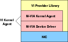 the M-VIA Kernel Agent and one or more M-VIA Device Drivers.  A VI Kernel